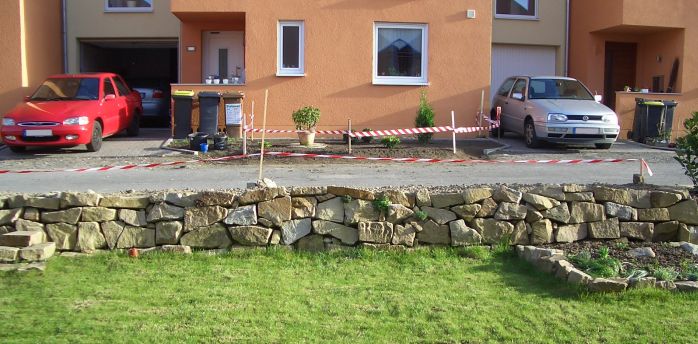 Hallo,sorry wenn meine Formulierungen missverständlich sind. Ich habe noch ein Foto angehängt, auf dem man den fraglichen Streifen besser sieht.Es ist also dann ein Streifen freier Erde zwischen, einseitig, hangabstützender Trockenmauer und Straße auf dem Niveau der Trockenmaueroberkante.Sichtschutz ist als Bezeichnung wohl auch etwas überdimensioniert. Eine bessere Bezeichnung währe wohl Zaunersatz, da mich die Stadt an dieser Stelle keinen Zaun bauen lässt.Die Nachbarn haben auf diesem Streifen entweder Lorbeerkirsche oder Hainbuche stehen. Die Siedlung gibt es aber erst ein Jahr, so dass ich noch nicht sagen kann, ob die gut wachsen oder nicht.Die Ritzen der Trockenmauer sollen nicht weiter bepflanzt werden. Also Steingartenpflanzen wären ein Missverständnis.Danke für die Antworten, ich hoffe jetzt ist mein Anliegen klarer.LG,TKsys