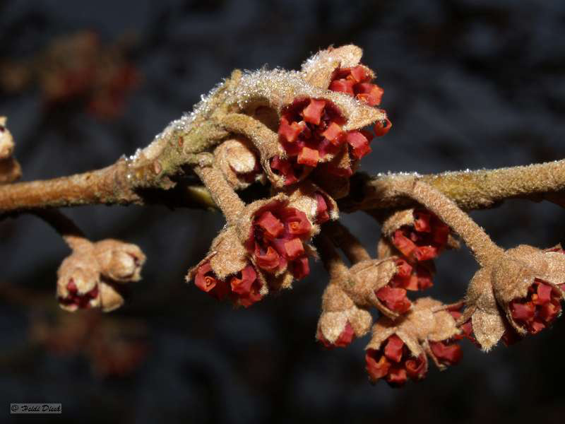 So sehen die Blüten der Parrotia persica auf der Seite von mobot.org aus. Ich sehe da keine Ähnlichkeit mit dem Bild oben. Rinde und Blätter kommen auch nicht hin...
