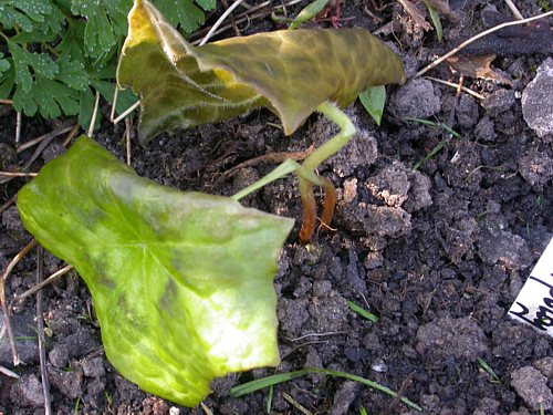 Jedenfalls kommt man dann immer mehr dahin zu erkennen, daß gelbe Tricyrtis, die mit schlappen verfrorenen Blättern dastehen nicht annähernd so hübsch sind wie robuste andere Schattenbewohner. Fortan werde ich mich lieber an diese halten...