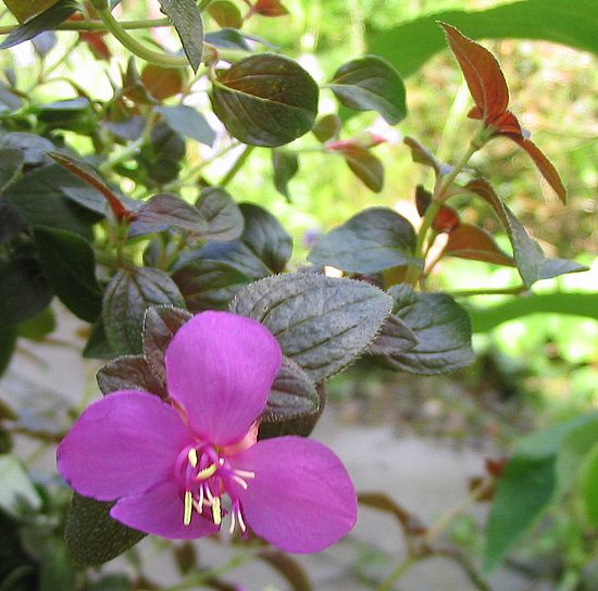 Schaut aus wie eine Centradenia (zum Beispiel hier zu finden), welche mit Tibouchina verwandt ist (Familie Melostomataceae).
