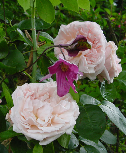 Da die Winchester Cathedral ja ununterbrochen blüht ist sie ja leicht zu kombinieren, genau wie Zéphirine Drouhin.Schwieriger wird es bei den Einmalblühenden wenn man beide zusammen haben möchte. Ich habe Reine des Violettes jetzt mal vor Alba plena (am Gerüst) gesetzt, bin gespannt ob die zusammenfinden. Zéphirine Drouhin und Cl. Prince Charles