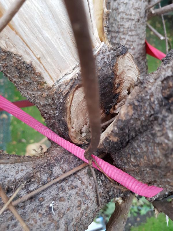 Beim letzten Sturm hat es meinen Catalpa genau in der Mitte getroffen und ein großer Ast ist herausgebrochen. Da nun Feuchtigkeit eindringen kann und das eine Pilzinfektion begünstigt würde ich die Stelle gerne sauber abschneiden, doch das geht leider gar nicht, da ich dort schlecht drankomme, vielleicht verdeutlichen die Bilder das Problem und jemand weiß Rat was ich dem Baum am Besten helfen kann, damit er den Schaden übersteht ?