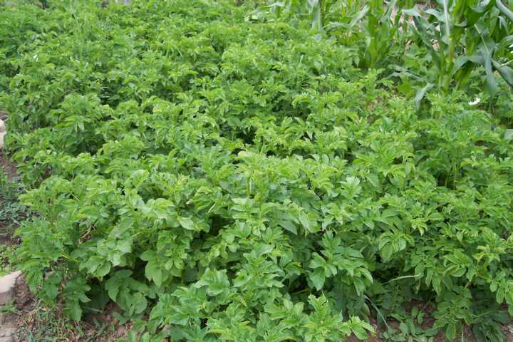 Wenn die Frühkartoffeln schlecht oder gar nicht tragen, werde ich die wohl nicht mehr anpflanzen - sie schneiden im Vergleich zu schlecht ab. Die drei späteren Sorten stehen zwar durch den vielen Regen sehr hoch, sehen aber alle gesund und kräftig aus.