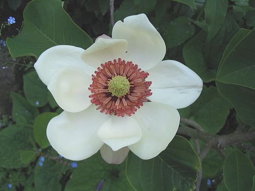 Zu Magnolia x Wieseneri, syn. M. watsonii (= M. hypoleuca x M. sieboldii) Bei mir nach 8 Jahren ein inzwischen 1,80 m hoher Strauch, der etwas mickrig wirkt. Allerdings wurde die Pflanze mehrmals umgesetzt (Umzug, Optimierung etc.). Bisher blühte die M. recht spärlich, dieses Jahr allerdings deutlich üppiger (12 Blütenknospen). Die Winterhärte ist an der Grenze. In dem sehr kalten Winter 2002/2003 (bis - 20°C) platzte an der Stammbasis die Rinde stellenweise auf, wurde aber im folgenden Frühjahr problemlos überwallt. Die Blüten sind überwältigend. Sie ähneln zwar sehr der M. sieboldii, sind aber deutlich größer (Durchmesser ca. 15 cm) und stehen vor allem aufrecht!, so dass man in sie hineinsehen und hineinriechen kann. Denn der Duft ist umwerfend, aber schwer zu beschreiben: tropisch schwül, vielleicht wie eine überreife Ananas. Die Blüten verströmen ihr Aroma über weite Strecken und parfümieren so ganze Gartenareale. Leider halten sie, wie alle Magnolienblüten, bei Wärme nicht lange. Ein äußerst empfehlenswertes Gehölz, dessen eiergroße Blütenknospen bereits einen hohen Zierwert haben.
