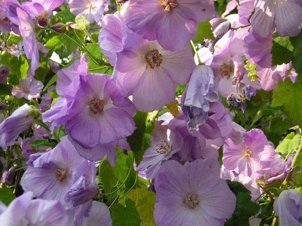 Ganz was Feines ist mir neulich begegnet in einer kleinen Gasse im Staedtchen hier. Da stand ich davor und wunderte mich, was fuer eine Malvenart das wohl sein koennte und ging gruebelnd nach Hause.Als ich das naechste Mal vorbeikam, hatte jemand ein Schildchen mit dem Namen 'Abutilon vitifolium' angebracht! :oDas Raetsel hat sich also geklaert. Wunderschoen, nicht?