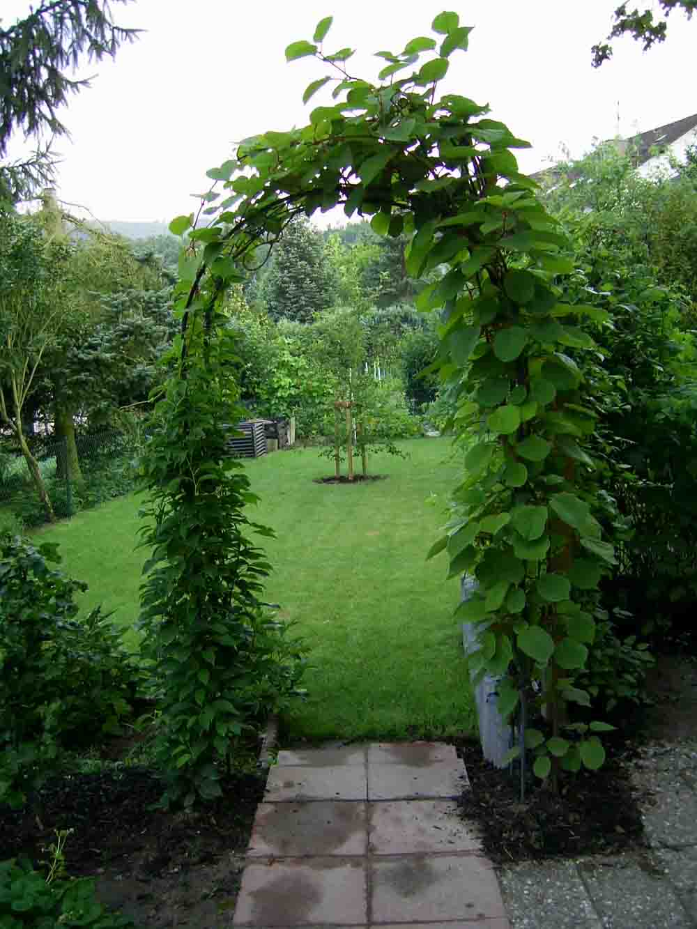 Hallo zusammen,meine beiden kiwi wachsen links und rechts am Rosenbogen. Es sind unterschiedliche Sorten ("Boskoop" und "arguta lasai"), beide selbstfruchtend. Sie sind beide im 3. Jahr, auch sehr wüchsig, besonders die mit den herzförmigen Blättern (boskoop), nur fruchten tun sie bis jetzt nicht. Die arguta hatte schon Blüten aber keinen Fruchtansatz.Wann haben Eure Kiwi angefangen Früchte zu bekommen? Gibt´s einen besonderen Trick?LGDagmar