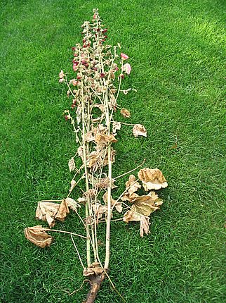 ...verschied diese Stockrose.Wie verdorrt sieht sie aus. Zunächst dachte ich an Wühlmäuse. Aber die Wurzeln sind völlig intakt.Habt ihr eine Erklärung?