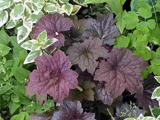 aber sehr hübsch ist das Purpurglöckchen - hier ein namenloses, ich weiß nicht, ob es 'Palace Purple' ist, ich kaufte mal eins, aber ob es das ist?