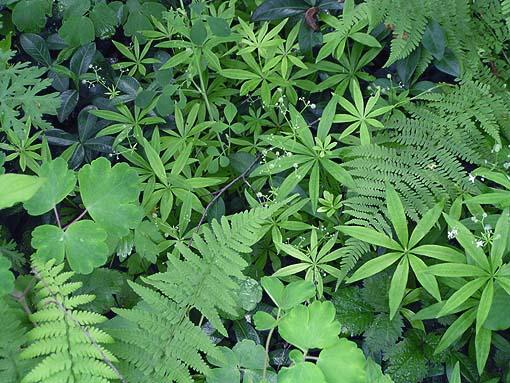 , er besteht aus Immergrün, Waldmeister, Akeleien, Farn, Thalictrum und Waldsteinie, glaub' ich.