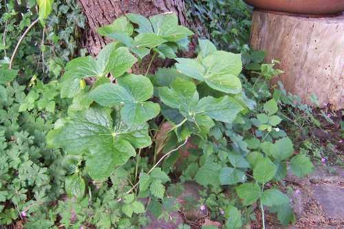 Bei mir gibt es noch etwas für den recht trockenen Schatten, wo außer Geranium macrorrhizum sichnicht viel wohl fühlt. Am Fuße meiner Kiefer wächst seit Jahren Podophyllum peltatum (Maiapfel),der allerdings schon verblüht ist. Aber die glänzenden Blätter sind auch sehr attraktiv. Es soll eine kriechende Rhizomstaude sein, aber so optimal scheint mein Maiapfel seinen Standort nicht zu finden, da er ziemlich seßhaft ist.Es gibt auch noch andere Arten, die für den feuchten, laubreichen Boden geeignet sind, die eine sehr hübsche Blattzeichnung haben.Grüße von carlina