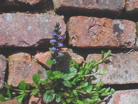 Es wächst echt aus allen Fugen, dabei ist mir wichtig, dass die Ziegel in den verschiedensten Rottönen zu sehen sind.Davor hab ich Rosen gepflanzt, irgendwann sieht das schon mal aus wie gewünscht.