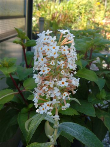 Das ist ein sehr hübscher Schmetterlingsflieder (Buddleja ... vermutlich davidii) - gerade die silbergrauen Blätter sind gar nicht soo häufig.
