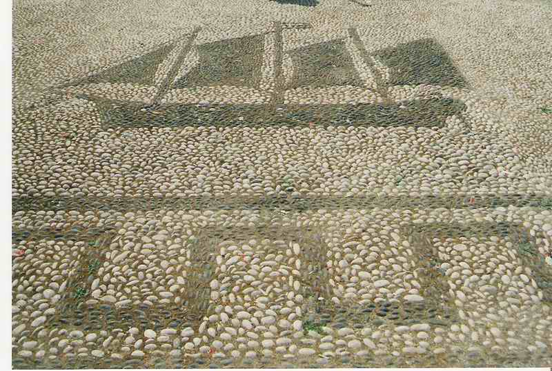 Auf der Insel Spetse an der Peleponnes sind ganze Straßen mit diesem Kieselplaster bedeckt. Da finden sich herrliche Ornamente, Anker, Schiffe, Kraken. Dieses Pflaster ist auch schon sehr alt, es wird gehegt und gepflegt als Touristenattration.Gruß Karin