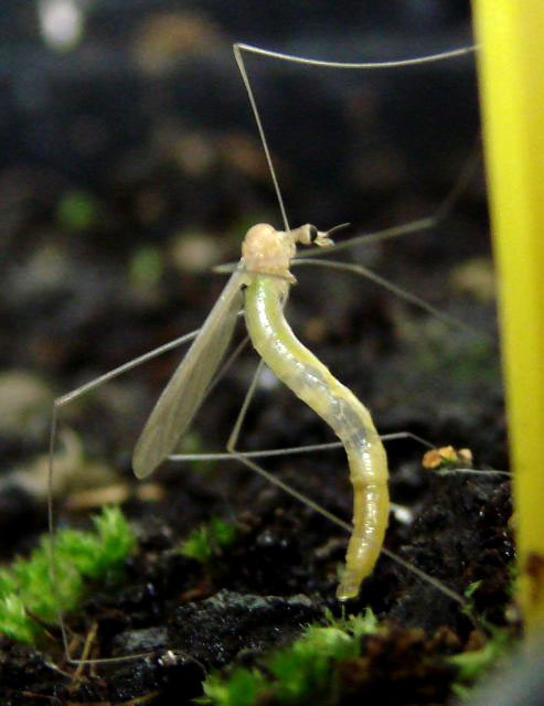 Die Schnake ist ca. 2.5 cm gross und stocherte mit dem gruenlich-durchsichtigen Hinterleib in der Erde rum. Vielleicht hat sie Eier gelegt, aber dann waere sie nicht frisch geschluepft...oder sie schluepfte gerade aus der Erde als ich sie erblickte.Wie lange dauert das Nachdunkeln?Danke erstmal fuer die Aufklaerung.Liebe Gruesse11vonZwerg