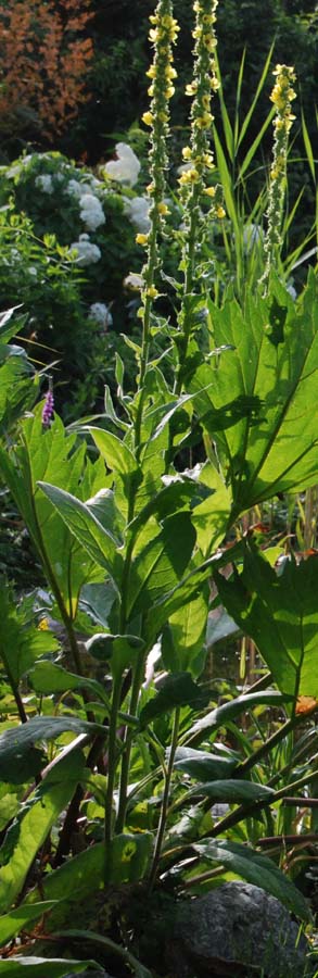 Ich muß dauzusagen (bzw. -schreiben), daß ich nie irgendwelche exotische (i.e. nicht einheimische) Königskerzen in meinem Garten gesät oder gepflanzt habe (von einigen V. phoeniceum Züchtungen als Zierpflanzen einmal abgesehen). Und der Vorbesitzer hat uns vor 16 Jahren eigentlich etwas hinterlassen, was die Engländer einen "blank canvass" nennen (in der Annonce damals "parkähnliches Grundstück" schöngeredet).Daher habe ich immer über eine einheimische Spielart gemutmasst.... Wallu