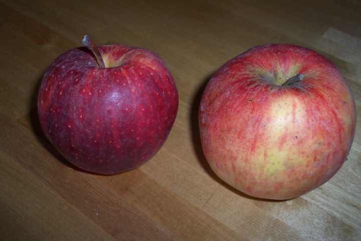 Ich habe noch Winterapfel Gala (links)und eine unbekannte Sorte von den Nachbarn...