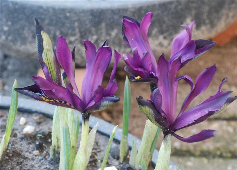 Nicht im warmen Spanien sondern im nasskalten Holland und zwar draussen in einer grossen Schale auf der Terrasse:Iris ret. 'Harmonie' :DSie blüht schon ein paar Tage.