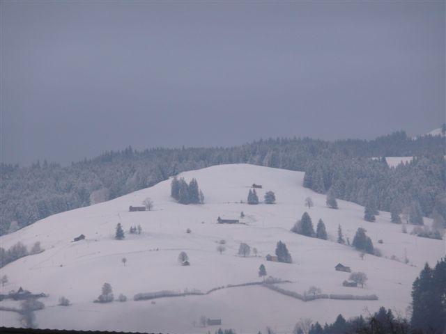 Hier gabs etwas Pappschnee, der sofort wieder weg war, aber alles was ein bißchen höher liegt hatte wohl auch einiges auf den Straßen. Im Umland war "Schee-unter", auf der A 1 lief teilweise gar nix mehr