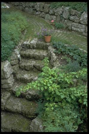 ... nochmal die Nagelfluh-Treppe nach unten in sehr steilem Gelände.Wir haben keinen Beton verwendet, der Stein ist selbst schon schwer genug.Mittlerweile ist der Hang sehr eingewachsen, der Stein etwas bemoost (Nord-West-Seite) und sieht sehr natürlich aus.lg Maude