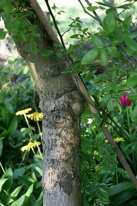Jetzt noch den Stamm bzw. ein Teil davon ...Der Knick sieht aus, wie eine Veredlungsstelle.Was meint ihr?Und: Danke