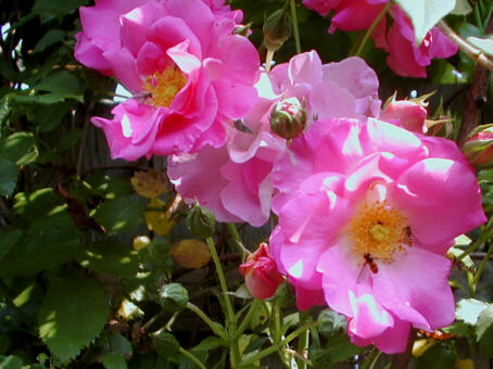Ich denke, es ist tatsächlich Manita.Was meinst du mit steif, Silvia? Die jungen Langtriebe im Frühjahr sind außerordentlich saftig (wie feldfrischer Spargel), weich und biegsam, fast wie gewelltes Haar, insbesondere wenn es viele parallele sind. Später dann sind sie erstarrt in ihrer Wellenbewegung.Du kannst das auf dem Mittelteil des Langtrieb-Bildes noch erkennen.Wo finde ich denn die amtliche Definition von "Rambler"? Möglicherweise bezeichne ich die Rose zu Unrecht als einen solchen.Die Rose schafft locker eine Gesamttrieblänge von mehr als 4 Metern, vielleicht auch deshalb, weil ich sie bis zu einer Höhe von 2,30 strikt dirigiere und erst dann frei wachsen lasse.Kordes gibt die Höhe der Manita mit 2,50 an bei einem Durchmesser von 1 Meter. Bei mir ist der Gesamtdurchmesser des Triebbündels etwa 10 -15 cm bis zu einer Höhe von gut 2 Metern, weil ich auf Pfostenbreite begrenzen muß, um an unser Feuerholz ohne aufgerissene Haut kommen zu können. Auf dem Dach dann kann sie sich in Konkurrenz mit den Kolleginnen frei ausbreiten ...