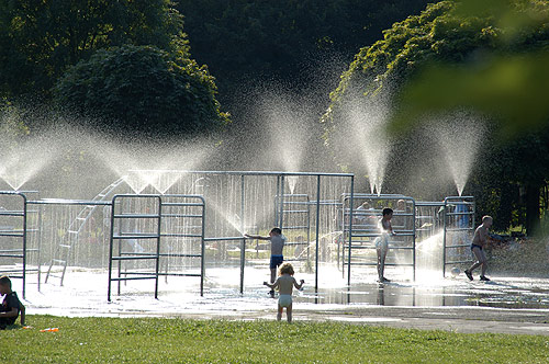 Nachmittags ist der 'Wasserspielplatz' in Betrieb: Mords Gaudi für die Pänz ...