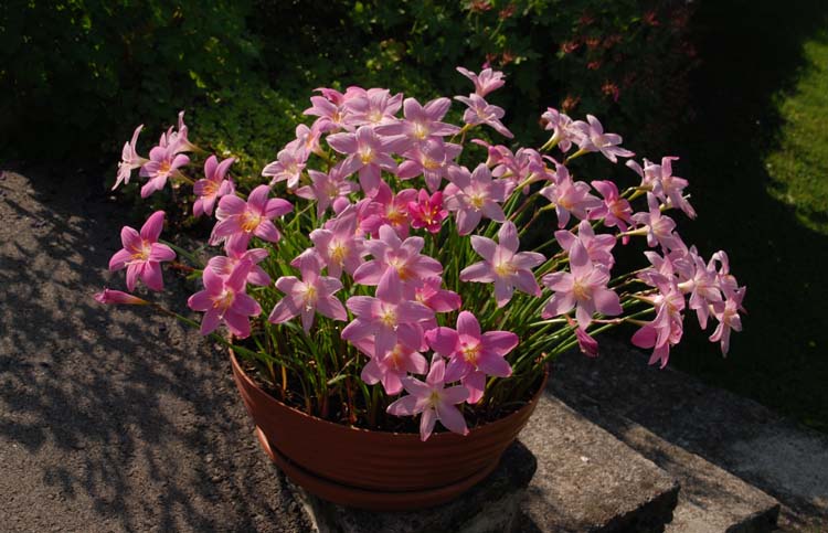 Ich tippe mal auf Gattung Zephyranthes oder Habranthus (Amaryllidaceae). Da gibt aber irgendwie mehrere ähnliche Arten, die gerne von den doofen Gärtnern verwechselt werden. Nichts genaueres weiß ich aber auch nicht.