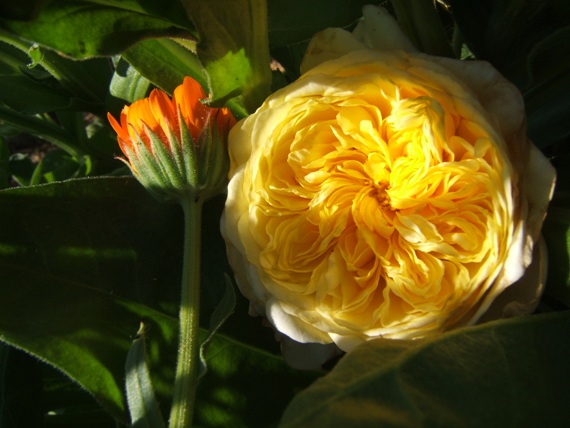 Ringelblumen passen ja nur zu wenigen Rosen, aber The Pilgrim gehört dazu!
