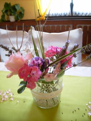 Der Hochzeitstrubel ist vorbei, wobei er sich aus traurigem Anlass in Grenzen hielt, und die "Kinder" samt Hund haben sich zum Stressabbau für ein paar Tage zur Mecklenburger Seenplatte abgesetzt.Da ich so nett gebeten wurde, die Tischdeko zu fotografieren, lasse ich mich überreden, wobei die Qualität des Fotos nicht die Welt ist (das ständige Rausgehen zum Rauchen war anstrengend, nicht der Alkohol - ich war Cheffahrer und bin Verfechter von 0,0 Promille aus DDR-Zeiten).