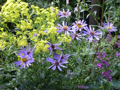 und Aster amellus 'Silbersee' in einem tollen silbrigen Lila, finde ich.
