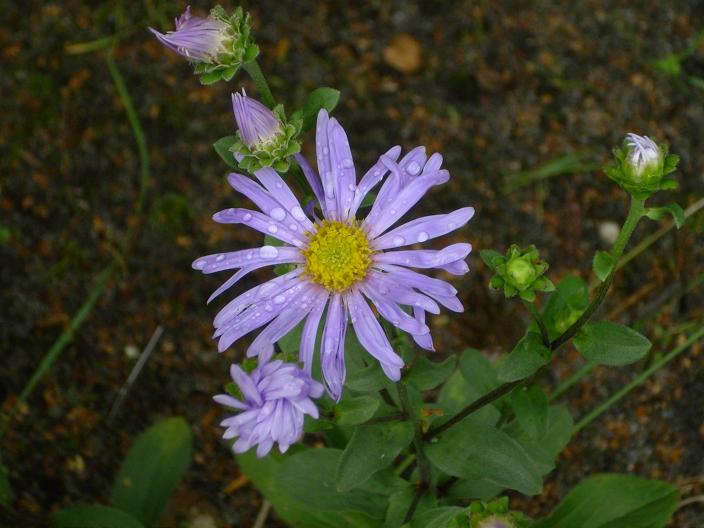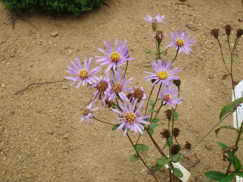 Aster radula 'August Sky' habe ich in Unkenntnis, dass es eher eine Pflanze für feuchte Standorte ist, viel zu trocken gesetzt. Sie verträgt es und ist etwa 30 cm hoch.
