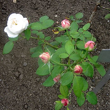 ;DWar noch zu klein, das Röschen.Ich habe sie übrigens vor 15 Jahren auch mal gehabt.Die 'Winchester Cathedral' war auch da, gefällt mir aber mit den flacheren, etwas zauseligeren Blüten nicht so gut. Deshalb kein Foto.