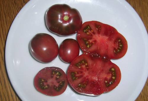 der thread wird ja sicher noch länger bestehen! bei mir ist ein teil der pflanzen bereits abgeerntet und entsorgt (damit alles übersichtlicher wird, bin ich froh darüber).mein diesjähriger favorit ist Evan´s Purple Pear , eine eher kleine bis mittelgroße, mehrgestaltige dunkelrote tomate. sie trägt sehr reich - schmeckt aromatisch süß und ist saftig-weich.
