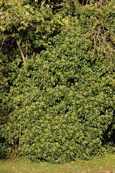 Diese grüne "Wand" besteht aus Efeu, der einen alten Holunder komplett durchwachsen hat.