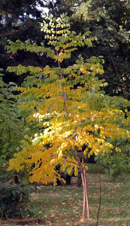 Ja, ich geb's zu.Aber wohl nicht nur meiner ;DHier ist es bei Parrotia und Amberbaum ganz ähnlich: allenfalls erste zarte Anklänge von Herbstfärbung. Schöne Färbung zeigen Nyssa und Sassafras, bloß kann ich da heute nicht fotografieren, weil es viel zu windig ist.Dein Garten ist offensichtlich ein Raritätenkabinett.
