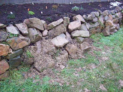 Ich kann mir das nich erklären, zumal sie ja jetzt schon 2 Winter und starke Regenfälle mitgemacht hat.Ich befürchte aber dass es dabei nicht bleiben wird, da noch an zusätzlich 2 anderen Stellen sich die Mauer anfängt zu wölben. Irgendwie drückt die Erde die Steine heraus.Das Ganze ärgert mich umso mehr, da ich dieses Jahr angefangen hatte, den Garten und somit die Trockenmauer zu bepflanzen. Es sieht wohl aus, dass die ganze Arbeit umsonst war und ich die Pflänzchen wieder herauspulen kann.