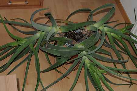 In unserer Wohnung steht unter dem Dachfenster eine Aloe Vera welche wir vor drei Jahren im Baumarkt gekauft haben. Wir sind beide (meine Frau und ich) nicht wirklich mit dem grünen Daumen gesegnet und deshalb landeten meist Pflanzen welche in unserem Haushalt nicht überlebten oder Probleme machten bei Freunden oder auf dem Kompost. Seit ca. 2 Monaten ist nun die Aloe Vera zum Patienten geworden. Früher standen die drei Triebe (nennt man das so?) aufrecht doch nun liegen sie auf der Seite. Uns tut aber die Aloe Vera leid und deshalb wollen wir, als absolute Laien, nun doch das gewagte Experiment des Umtopfens wagen. Es sei denn dieses "zur Seite legen" ist ein Zeichen für irgend eine Krankheit (Wurzel?) Könnte ihr uns einen Rat geben ob das Umtopfen sinnvoll ist und wie, was und wann es zu machen wäre?Danke PaulIm Anhang ist ein Bild des Patienten welcher wahrscheinlich aus drei Pflanzen besteht.