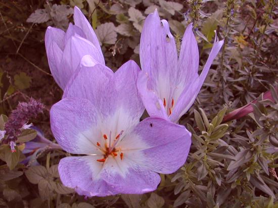 Ich mache mal den Anfang mit Colchicum autumnale, jener Herbstzeitlose, die auch in meiner Gegend an manchen Wiesen (es sind hier immer Hänge) noch wild vorkommt. Die hier sind aus meinem Garten: