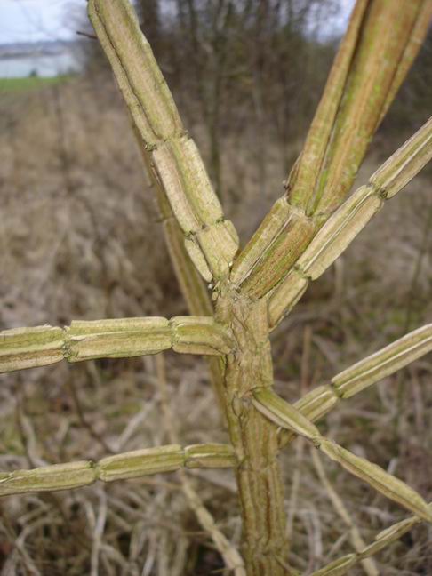 In der vorigen Woche fand ich bei einem Spaziergang an der Flensburger Förde diesen Strauch, der so sonderbar eingeschnürte Zweig hat. Eigentlich weiß ich ganz gut, was so an meinen Standarsspaziergängen am Wegesrand wächst, eine solche "Zweigstruktur" ist mir aber noch nicht aufgefallen und ich konnt mich bisher auch nicht daran erinnern, was dort wächst. Da die Blätter fehlen komm ich auch nicht so recht weiter. Der Strauch ist etwa 1,5 bis 2 m hoch und hat recht grobe Zweige ohne feinere Verzeigungen.Kennt ihn jemand von Euch?Liebe Grüße Barbara