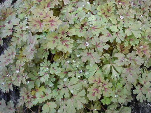 Lange Zeit war kaum etwas von den zeitweilig unterirdischen Lerchenspornen zu sehen, nur Arten wie C. lutea oder C. ochroleuca (ja, ich weiß, die heißen jetzt irgendwie anders) hatten Blätter. Seit wenigen Wochen aber zeigen sich z.B. die Blätter von Corydalis "Blackberry Wine", von dem ich gar nicht weiß, wie der entstanden ist. Weiß jemand von Euch, welche Kreuzung da zugrunde liegt? Die Blätter ähneln eher denen von C. ochroleuca, die Blüten sind dann später, wie der Name schon sagt, eher lilarot, und ziemlich zierlich. Hier der derzeitige Zustand: