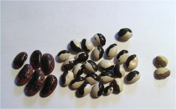 Die Bezeichnung weiss bezieht sich hier auf die Blütenfarbe. Feuerbohnen blühen unterschiedlich und haben Körner in den Farben weiss, braun, gescheckt und schwarz.