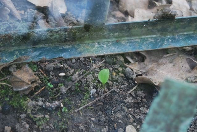Mein T. sessile ist möglicherweise auch keins, aber ein T. cuneatum ist es auch nicht. Es legt nicht zu, dh es produziert kaum mehr Blütenstiele aus einer Pflanze, aber es sät sich aus wie kein anderes. Hier stehen mehrere Generationen beisammen, leider unterm Glashaus, weil die kleine Katze just diesen Fleck als Klo auserkoren hat.