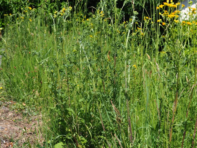 was ich meine ist das Gewöhnliche Greiskraut, glaube ich. Senecio vulgaris. Kann man das mit der Ambrosia verwechseln, um die so ein Geschrei gemacht wird?