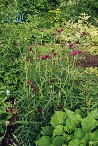 Wie oft hab' ich die schon gepflanzt, und nie ist es etwas geworden. In England ist sie ja immer so etwas wie ein "Star" bei den angesagtesten Garten-Designern. Sie will feuchten, sauren Boden, leider habe ich das nicht. Sie ist auch eine sterile Kulturform, so dass man nicht einmal auf Sämlinge hoffen kann. Und niemand scheint die fertile Naturart anzubieten, die vielleicht wüchsiger ist und sich zumindest durch Samen vermehren könnte ...Ich fange mal mit Cirsium rivulare 'Atropurpureum' - der Purpur-Kratzdistel an.