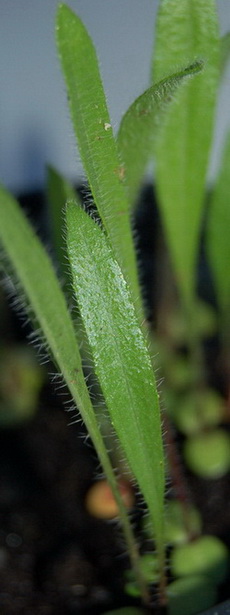 ich habe keine ahnung santolina, aber die sämlinge von echinacea tennesseensis sehen so ähnlich aus...2 rundl. keimblätter + dann dieses lange, lanzettliche primärblatt. ob die allerdings so behaart sind....müsste nochmal nachschauen