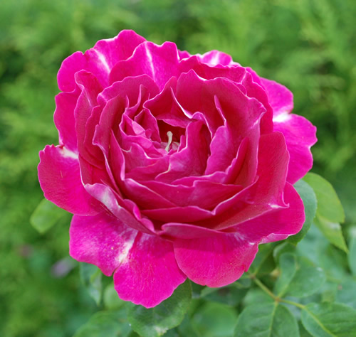 Da gefällt mir die Farbe, eine Kletterrose vom Züchter Hans Wüest, der diese noch unbekannte Rose aus dem Tessin brachte und eine davon steht jetzt in meinem Garten: