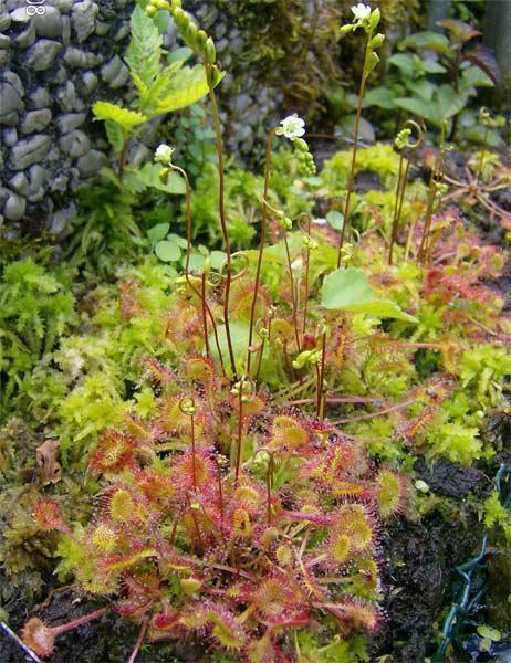 Und auf der obersten Stufe der Trittleiter, auf einem Torfziegel, fühlt sich der rundblättrige Sonnentau wohl (dank einer Spende eines lieben Forumsmitglieds).