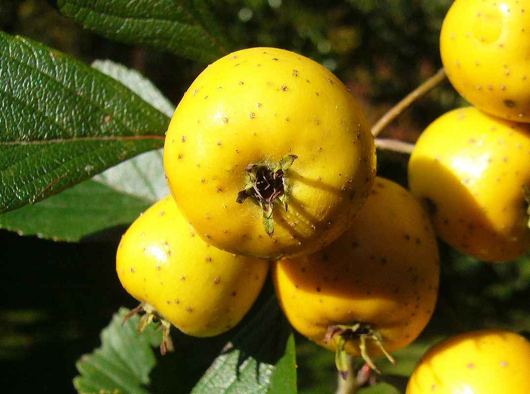 ... oha ! so einen hab ich ... und ich hielt es für eine Sorbus Zierform ... :oCiao !Hier ein extrem seltenes Obst: Der Mexikanische Weißdorn (Crataegus mexicana f. stipularis), der sich hier überraschenderweise als winterhart erwiesen hat. Seine apfelartigen, leuchtend gelben Früchte sind >3 cm breit, essbar (in Mexiko bekanntes Obst) und sehr schmuckvoll.