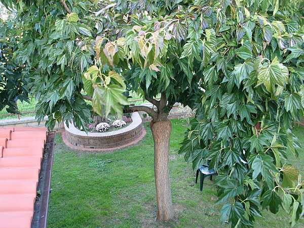 Da fällt mir noch ein Baum ein Muß ein Obst sein obwohl ich keine Früchte gesehn habe. Steht am Lago di Bolsena (Mittelitalien). Das übliche Obst dort kenn ich gut. Besonders interessant war die Veredelungsstelle.