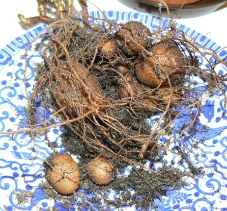 Bitte, bitte!Die bekommen doch bestimmt keine Braunfäule!Es gibt wirklich eine Pelargonienart, die Knollen bildet , welche von den Südafrikanern wie Kartoffeln zubereitet werden.Ich bin aber momentan einfach zu faul, meine Bücher zu durchforsten.